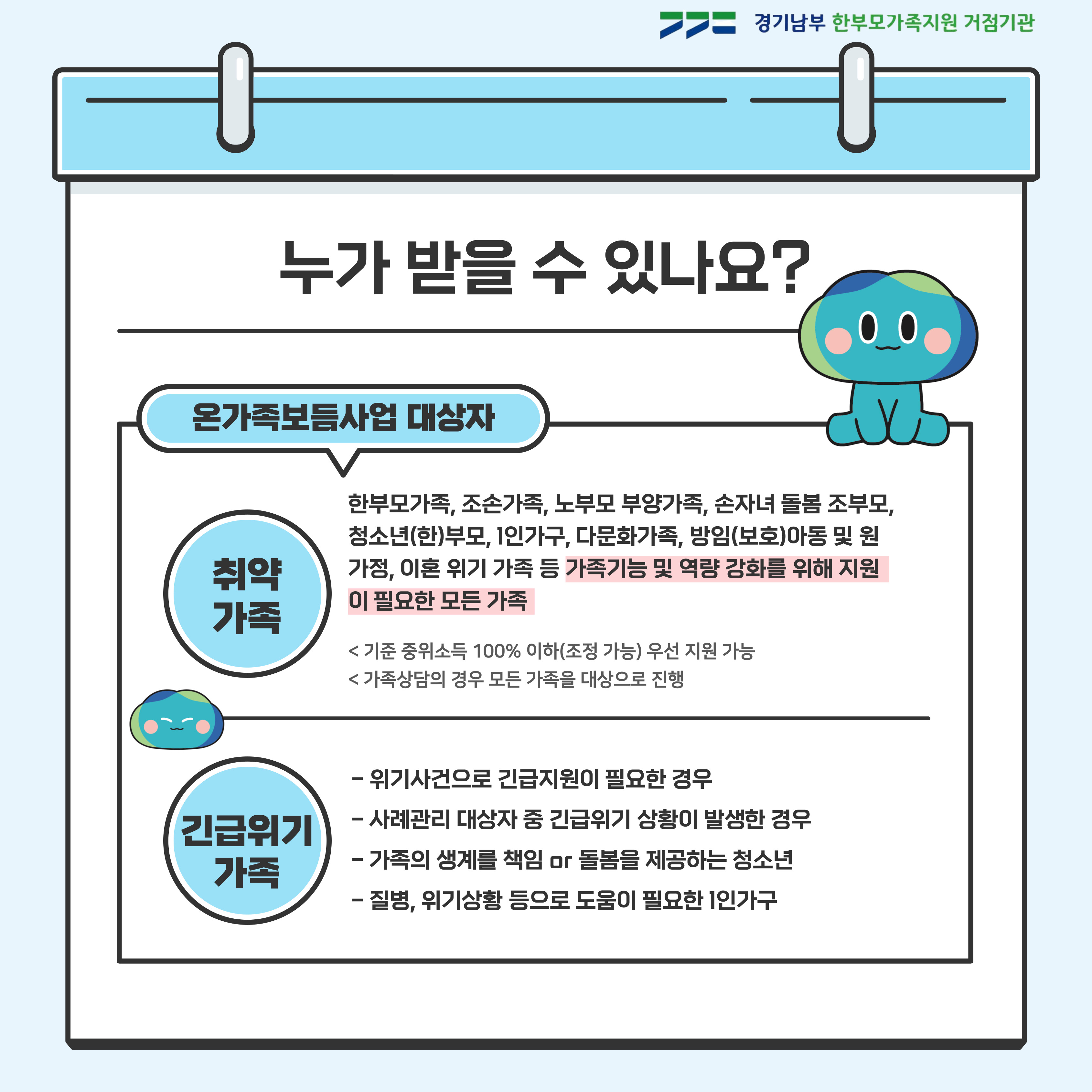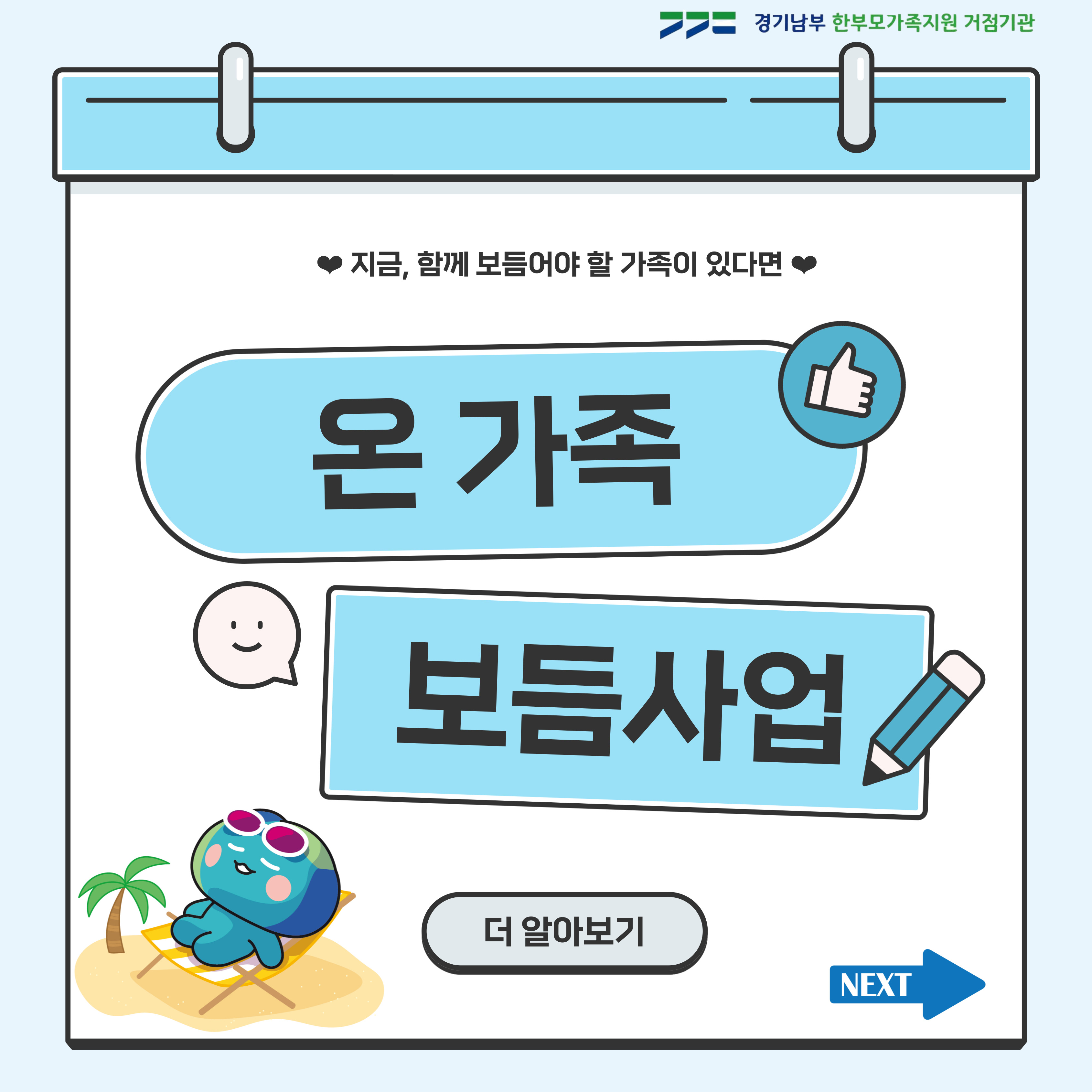 이번주 첫번째 카드뉴스 주제는 온가족보듬사업입니다.