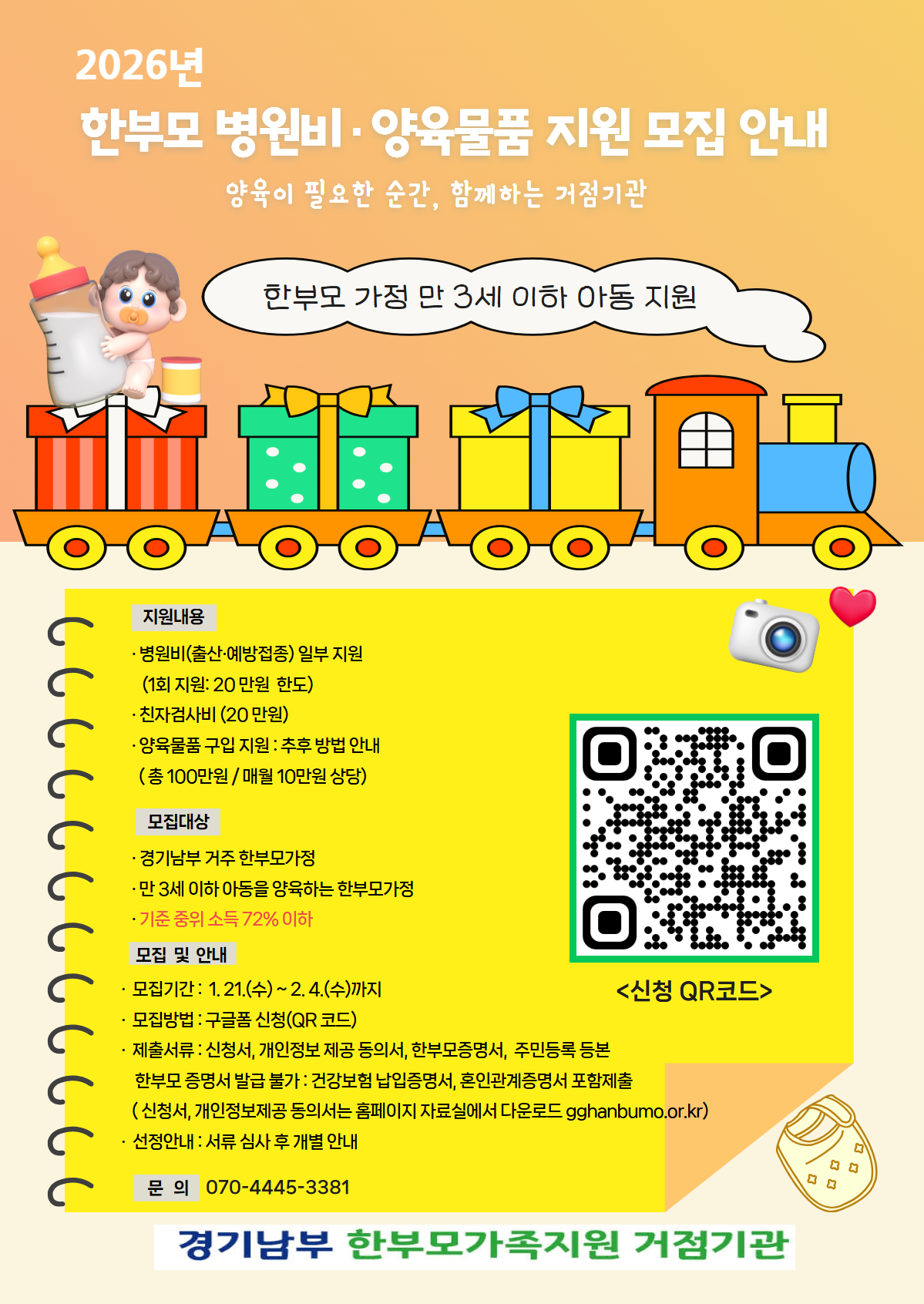 경기남부 한부모가족지원 거점기관 양육물품지원 모집 합니다.