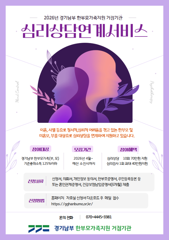 남부) 2026년 심리상담연계서비스 사업 홍보글