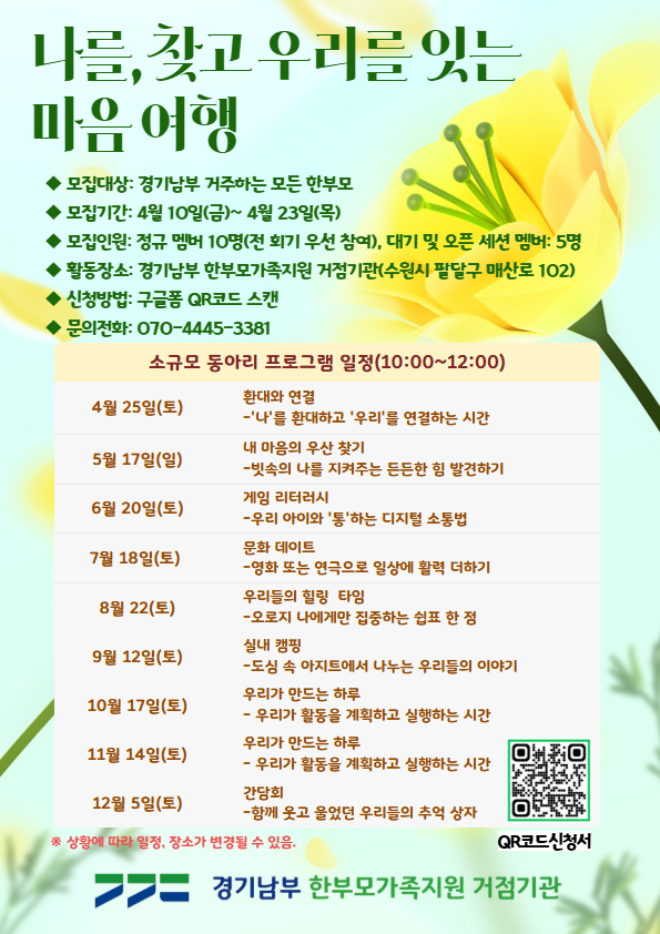 자세한 일정은 홍보지를 확인하신 후 편안하게 연락 주세요.