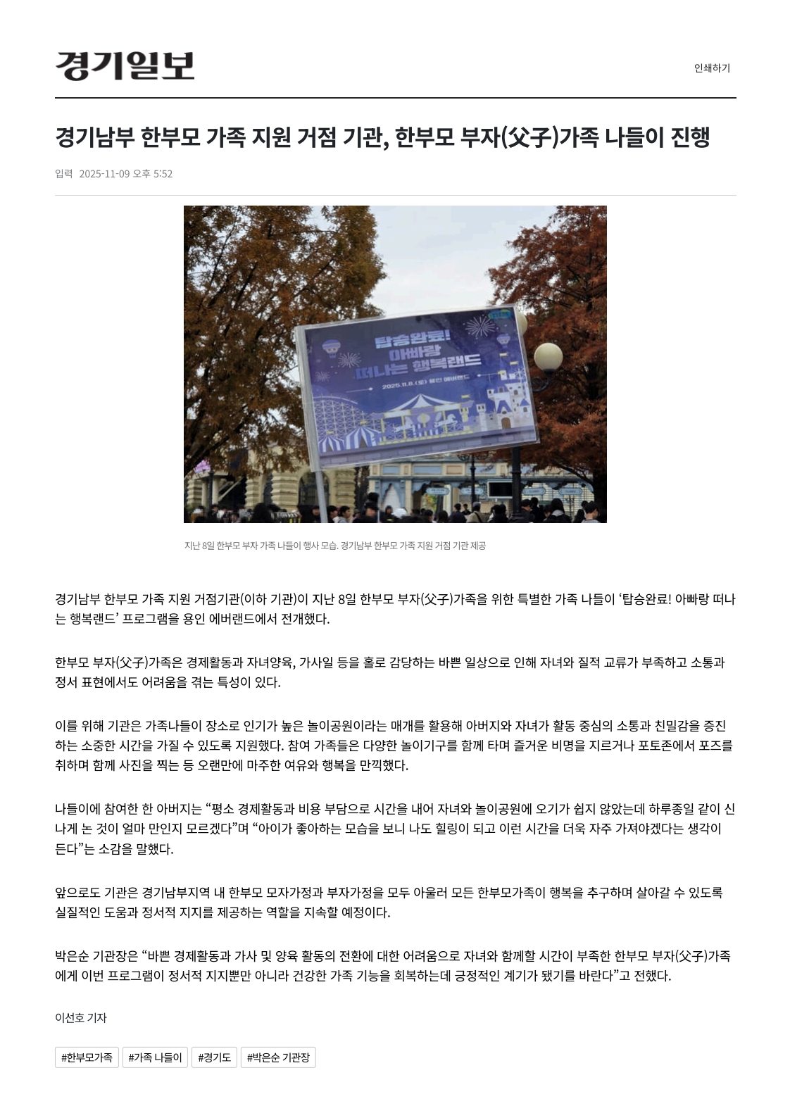 경기남부 한부모 부자(父子)가족 나들이 진행