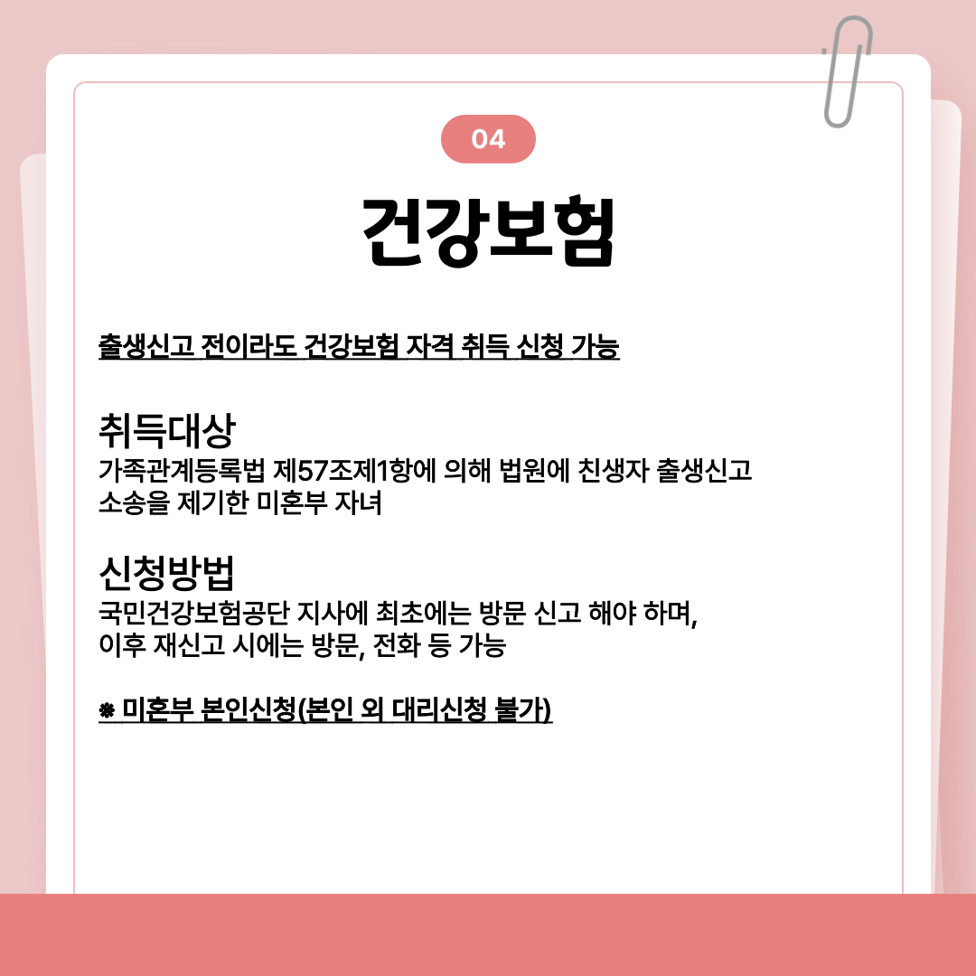 이번주 두번째 카드뉴스 주제는 미혼부 자녀 출생신고입니다.