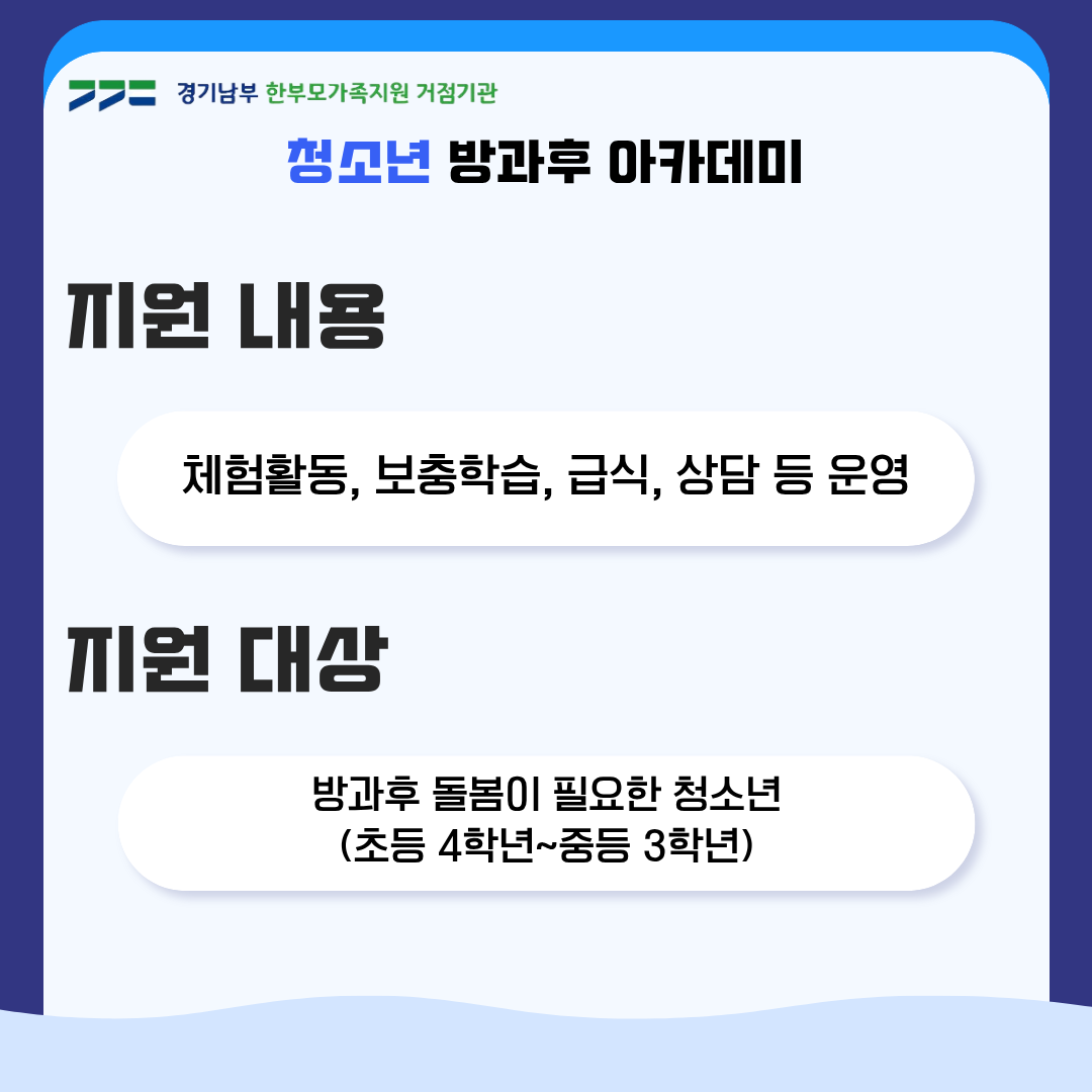 이번주 두번째 카드뉴스 주제는 청소년 방과후 아카데미입니다.