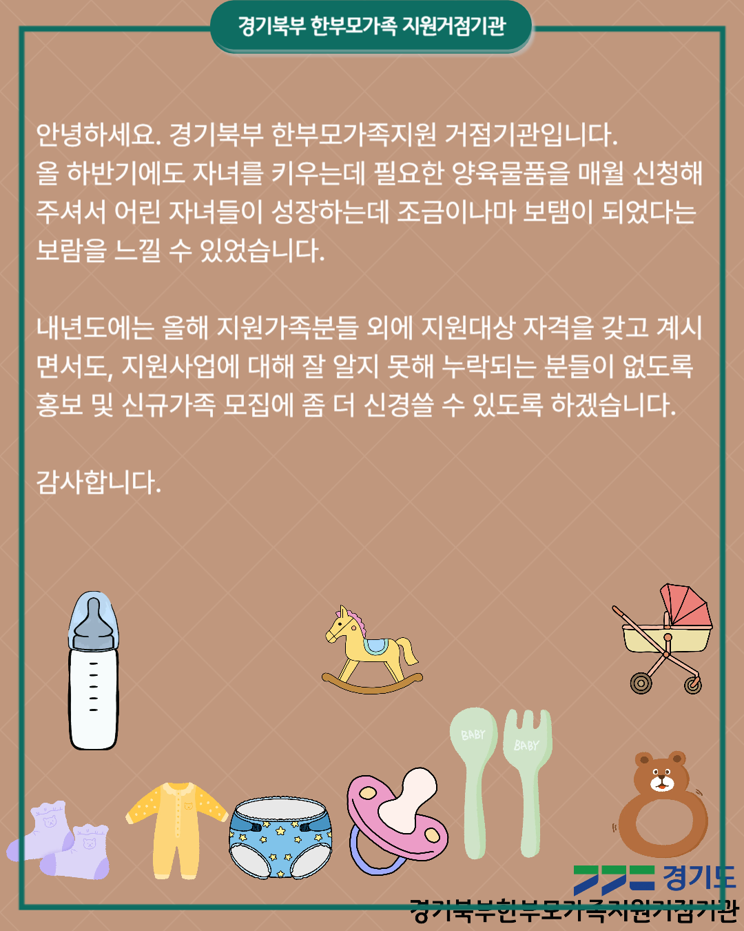 안녕하세요. 경기북부 한부모가족지원 거점기관입니다.